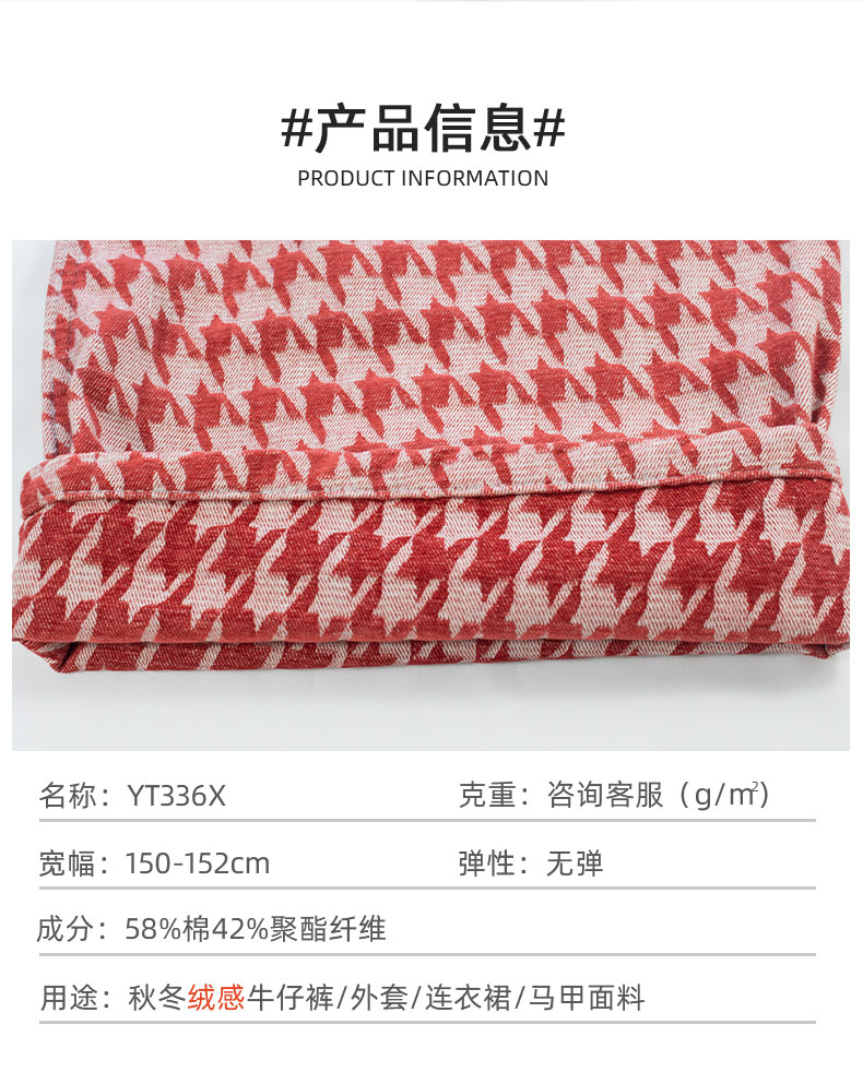 關(guān)鍵字:絲絨牛仔面料,提花牛仔,千鳥格,秋冬牛仔