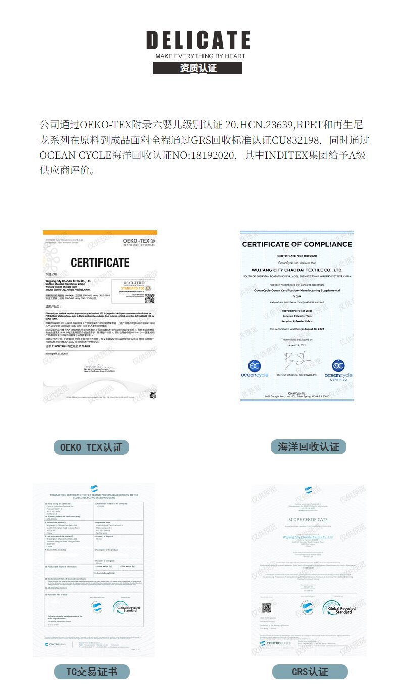 關(guān)鍵字:再生面料,再生陽(yáng)離子牛津布面料,GRS認(rèn)證面料