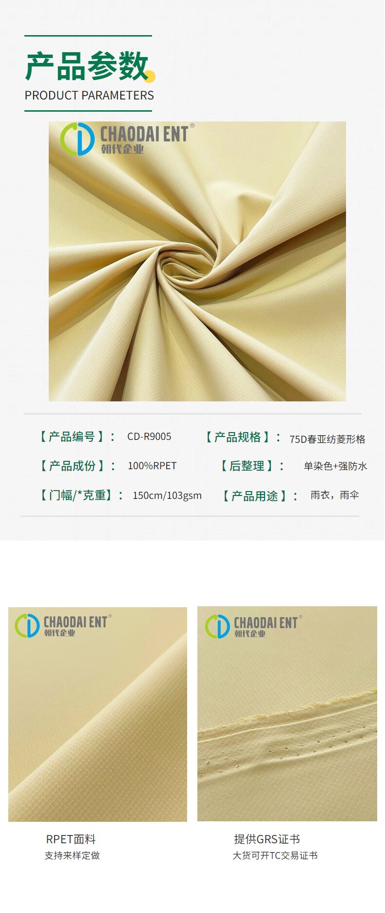 關(guān)鍵字:再生滌綸面料,菱形格子春亞紡面料,GRS認(rèn)證面料