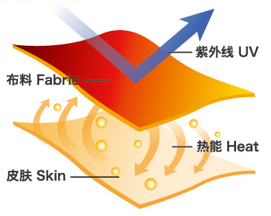 熱感纖維內(nèi)含阻止紫外線之粒子,在陽光下具有極佳的抗UV效果。