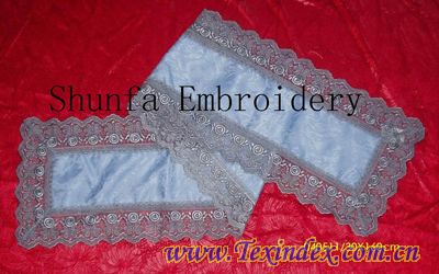 枕袋,床單,被套,臺布,窗簾,花邊,水溶花邊,繡花,棉布花邊,桌布,咖啡簾,門簾,餐巾盒,棉布繡片,TC花邊,成品花邊,大機繡花,電腦繡花,床上用品,家用紡織品,繡片
