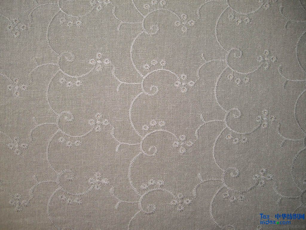 亞麻粘繡花燙銀布 燙銀面料 繡花布