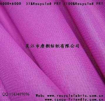 (1)再生PET面料,是一種新型的環(huán)保再生面料 ,其紗線是從廢棄的礦泉水瓶子和可樂瓶中提取制成的,又俗稱為可樂瓶環(huán)保布(RPET fabric)。此產(chǎn)品因其是廢物再利用,所以在國(guó)外尤其是歐美發(fā)達(dá)國(guó)家很受青睞,廣泛用在登山包、挎包、箱包里料、書包、襪子,時(shí)尚包,吊帶衫,抗菌孕婦裝、T恤、童裝、男女休閑裝、風(fēng)衣、羽絨(防寒)服、工作制服、抗菌貼身嬰兒服裝,手套、圍巾、毛巾、浴巾、儲(chǔ)物箱里料,沙灘褲,泳衣,睡衣、運(yùn)動(dòng)服、束口袋、禮品袋,夾克、手提袋、購(gòu)物袋、毯子、帽子、鞋材、包、雨傘、窗簾等等。