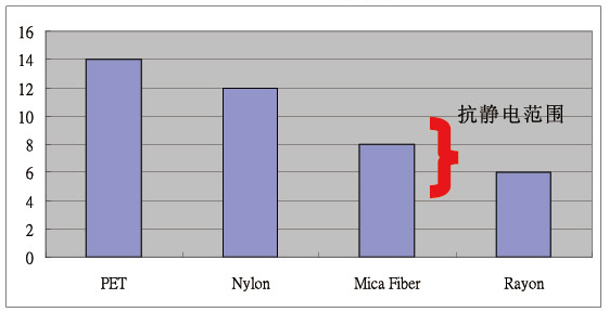 抗靜電功能冰涼纖維與其他紗種比較,云母紗優(yōu)異的抗靜電效果使其與PET或者NYLON產(chǎn)生區(qū)別。