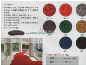 【 雅順地毯】 專業(yè)生產(chǎn)產(chǎn)品包括:門口墊,企業(yè)標志LOGO地墊,浴室墊,尼龍橡膠印花毯,3M地毯,草坪絲地毯,滿鋪工程毯…承接來樣加工,專業(yè)為酒店,別墅,電梯,走廊等特制地毯,尤其專業(yè)為企業(yè)設(shè)計及定制Logo廣告地毯。經(jīng)營產(chǎn)品:威爾頓塊毯,雪尼爾,長毛地毯, PVC 地毯,植絨地毯,會議/展覽用針刺無紡毯塊毯,浴室墊,門墊,防滑墊,PVC地毯,羊毛地毯,手工地毯,滿鋪地毯,方塊地毯,大堂地毯,酒店地毯,地墊,廣告地毯,高檔地毯,特價地毯等。產(chǎn)品主要銷往美國,日本,臺灣,新加坡,馬來西亞等東南亞地區(qū)及中國大陸。