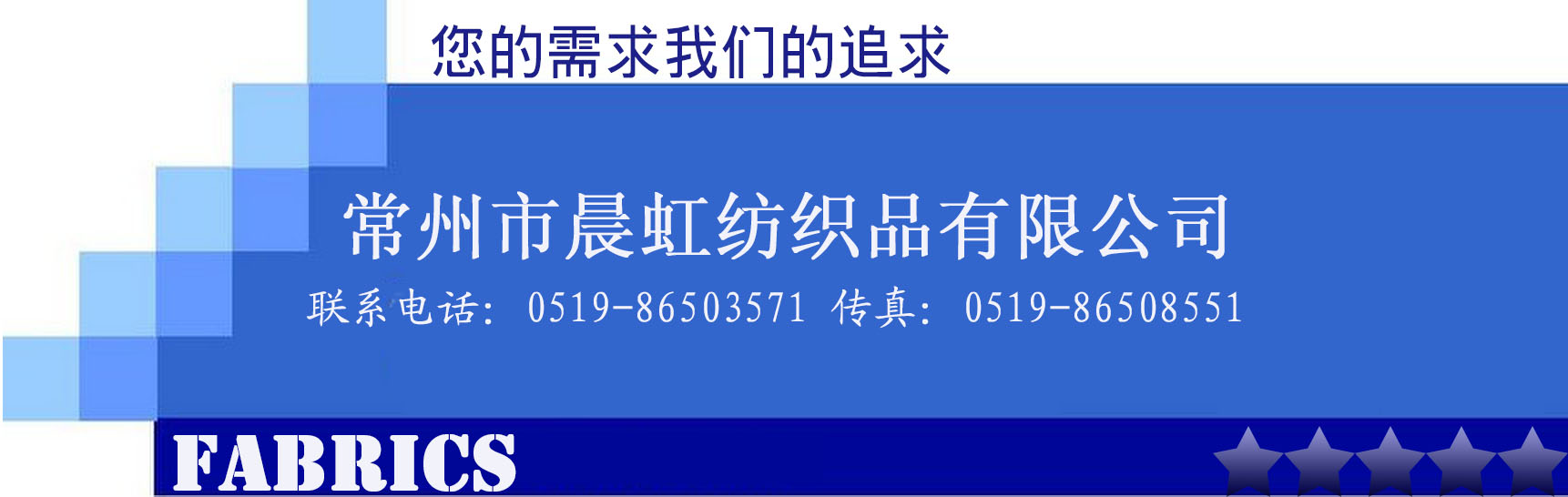 常州晨虹紡織品有限公司是從事色織布的生產(chǎn)、銷售的專業(yè)企業(yè)。公司擁有目前國(guó)內(nèi)最先進(jìn)的織造一整套的生產(chǎn)設(shè)備。經(jīng)過(guò)公司全體員工的努力,公司已成為年銷售超伍千萬(wàn)元的重點(diǎn)工業(yè)企業(yè)。