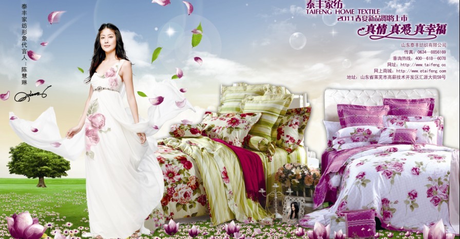 「品牌推廣」公司不斷致力于品牌運(yùn)作與推廣,邀請(qǐng)香港巨星陳慧琳擔(dān)任品牌形象大使,其高貴、時(shí)尚而又典雅的形象與泰豐品牌內(nèi)涵完美契合,迅速提高了品牌知名度。緊密貼合消費(fèi)者對(duì)個(gè)性時(shí)尚的需求,泰豐家紡建立了以泰豐品牌為核心,以康秀、愛(ài)迪卡為附的多品牌矩陣,滿足了不同群體對(duì)高品質(zhì)生活的需求,完善的品牌架構(gòu)形成了競(jìng)爭(zhēng)合力。定期參加德國(guó)法蘭克福、意大利米蘭、法國(guó)巴黎等地舉辦的國(guó)際家紡展覽會(huì),經(jīng)典品牌形象聲譽(yù)遠(yuǎn)播,另外,公司每年投入近千萬(wàn)廣告資金加大傳播力度,通過(guò)各種媒體渠道提升品牌知名度。