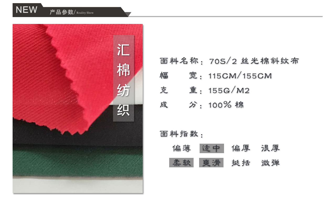 產(chǎn)品關(guān)鍵字:雙絲光棉斜紋汗布,絲光棉面料,絲光棉汗布,斜紋汗布,平紋布