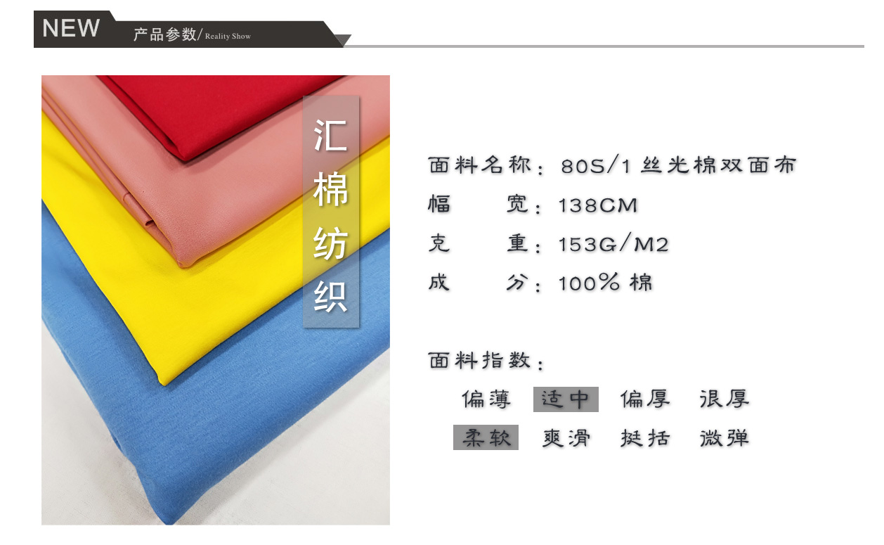 產(chǎn)品關(guān)鍵字:絲光棉布,絲光棉雙面布,絲光棉面料,高端絲光棉布,服裝用布
