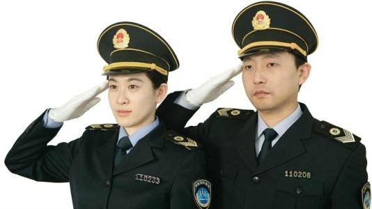 ?。ㄒ唬┲b時(shí),帽徽、肩章、臂章、胸牌、領(lǐng)帶、領(lǐng)帶夾應(yīng)按規(guī)定佩戴齊全,位置準(zhǔn)確、端正。胸牌一人一號(hào),不得借用、交換使用。