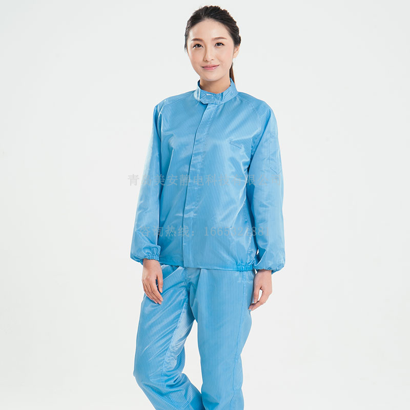 不發(fā)塵,不掉纖維和顆粒,透塵率低,能阻隔0.5以上的粒徑的微粒子,有效控制人體對(duì)潔凈防靜電區(qū)域的污染.采用高規(guī)格的環(huán)保的導(dǎo)電綢原材料,部分原材料采用進(jìn)口原材料,并經(jīng)過特殊處理,滿足潔凈級(jí)穿戴需求,擁有良好的電氣連續(xù)性,快速消散靜電,抗拉伸。