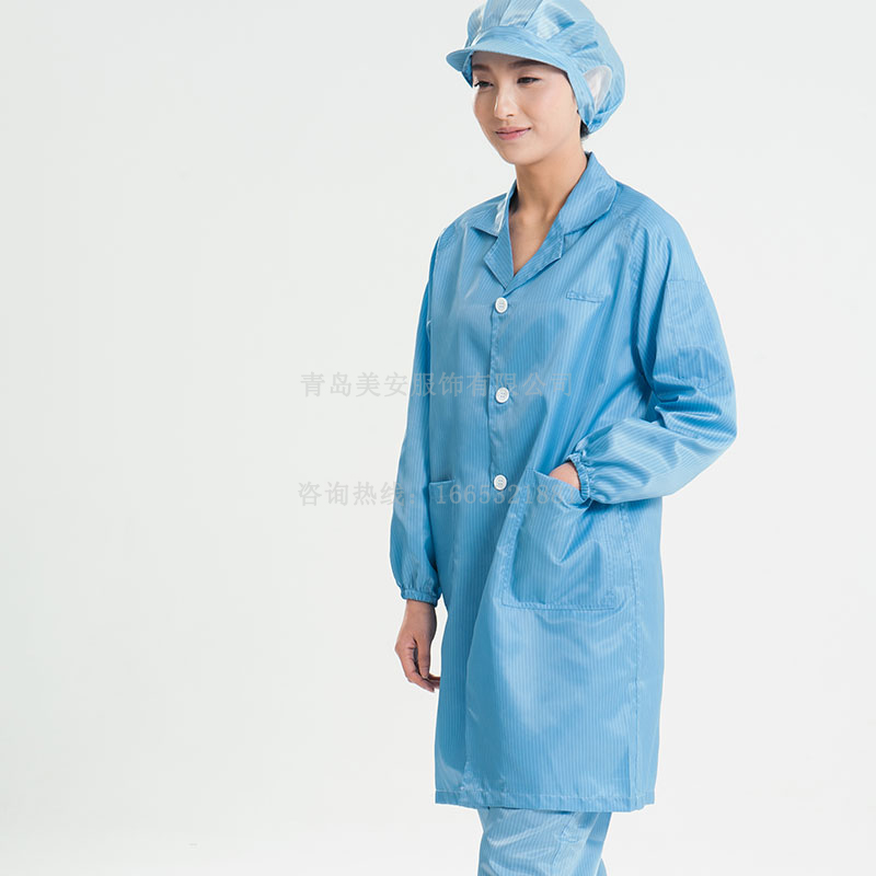 產(chǎn)品關鍵字:青島美安服飾,防靜電大褂,防靜電服,無塵服,潔凈服