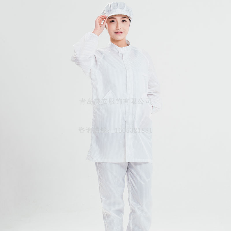 不發(fā)塵,不掉纖維和顆粒,透塵率低,能阻隔0.5以上的粒徑的微粒子,有效控制人體對潔凈防靜電區(qū)域的污染.采用高規(guī)格的環(huán)保的導(dǎo)電綢原材料,部分原材料采用進(jìn)口原材料,并經(jīng)過特殊處理,滿足潔凈級穿戴需求,擁有良好的電氣連續(xù)性,快速消散靜電,抗拉伸。