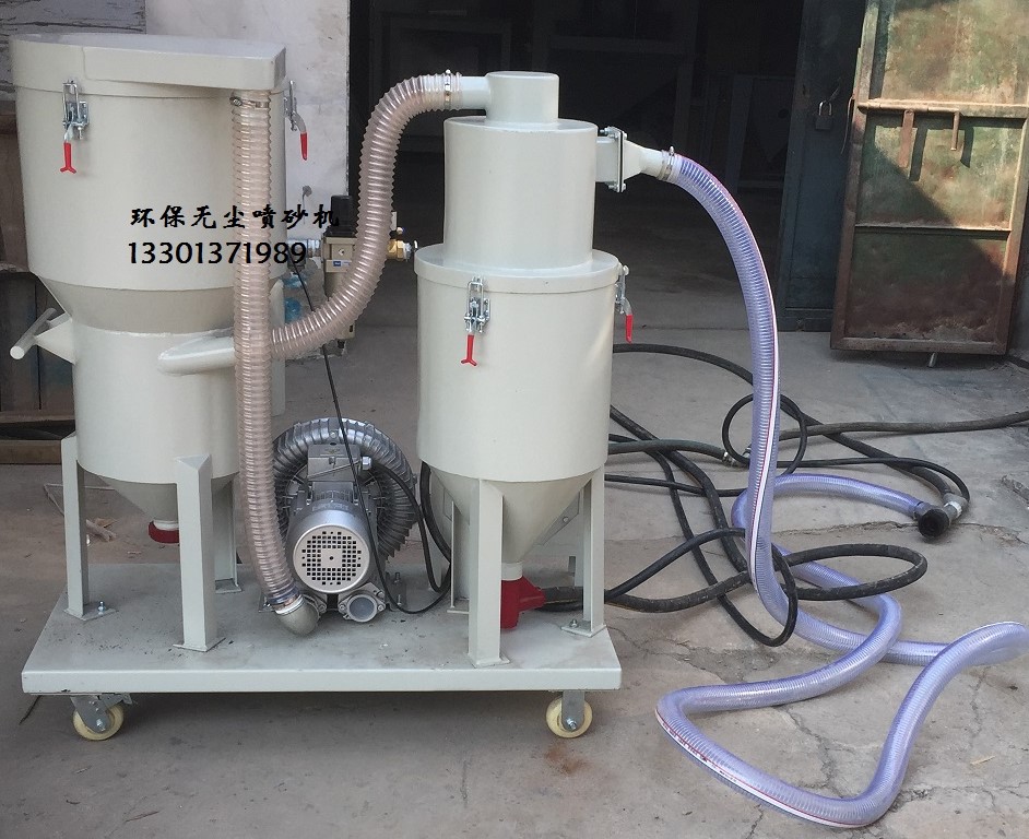 分體式回收循環(huán)噴砂機。是一種干式無塵環(huán)保多用途噴砂機。其一機可以實現(xiàn)三種用途。解決了噴砂作業(yè)中粉塵污染問題,環(huán)保作業(yè)功效不高,異形面環(huán)保噴砂無法進行,現(xiàn)場砂料人工篩選勞動強度大砂料粉塵無法分離的問題。