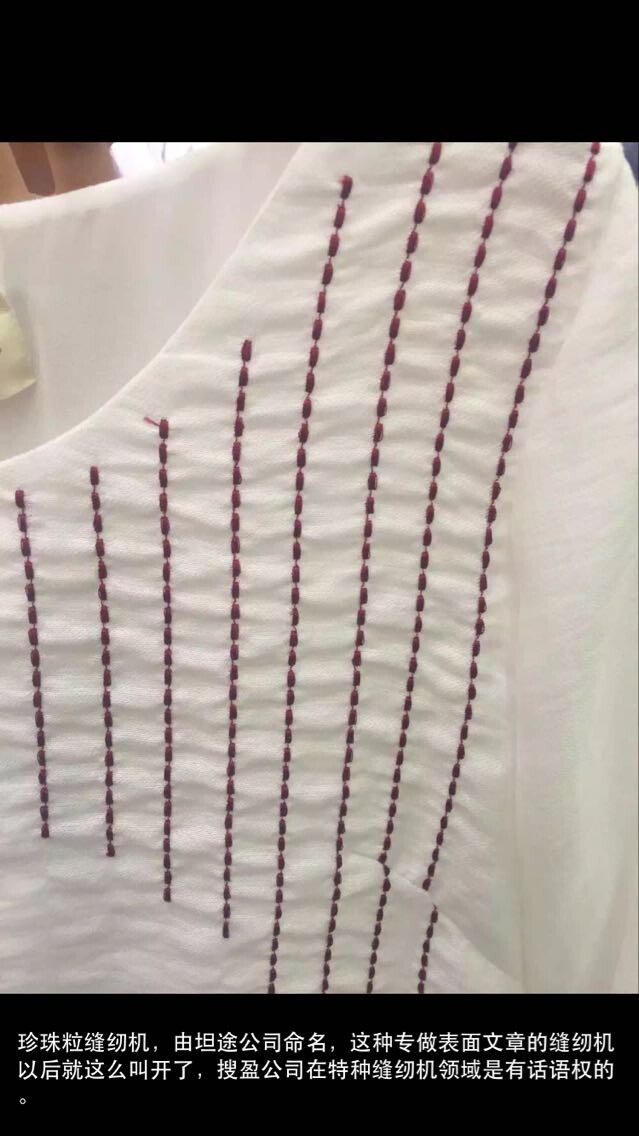 “搜盈”成立了服裝花飾特繡花事業(yè)部,她匯集了世界各國高、精、尖領(lǐng)域的縫紉機,積極地追求新、奇、特的服裝加工工藝,熱忱地配合服裝設(shè)計師的工作,希望引領(lǐng)、加速祖國服裝行業(yè)的發(fā)展。我們努力營造“有服裝設(shè)計師的夢,就有圓夢工場”。在搜盈展示廳里展出了一批新的服裝表面裝飾工藝布樣,比如:對絲機(油票齒邊,小圈繡),曲牙車,縫線打纜,鏟雜縫紉機,電子花樣機,貝殼拷邊,花色珠邊機,橫珠邊,斜珠邊,打裥,打條,摩卡車,橡筋打纜,壓縮打纜,超聲波等特種縫制工藝?!?br />