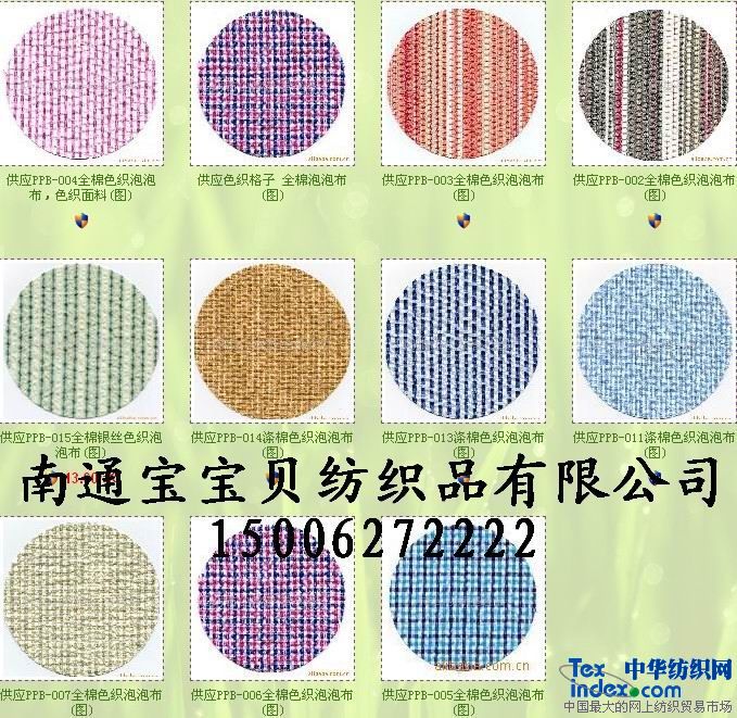 南通寶寶貝紡織品有限公司位于紡織基地江蘇省南通市,占地面積10000多平方米, 公司現(xiàn)有員工200余人,生產(chǎn)設(shè)備先進(jìn),專業(yè)生產(chǎn)各類外貿(mào)色織面料,如:全棉色織布、滌棉色織布、皺布印花布、亞麻布、麻棉、雙層布、府綢布、牛津布、彈力布、泡泡紗、楊柳皺、金銀絲布等。從小樣設(shè)計,到大貨試產(chǎn)準(zhǔn)確及時,適應(yīng)多種訂單。公司產(chǎn)品不僅在國內(nèi)贏得了廣大客戶的認(rèn)可,還遠(yuǎn)銷日本及歐美國際市場。公司拓寬生產(chǎn)品種的同時,嚴(yán)格按照國際先進(jìn)標(biāo)準(zhǔn)控制產(chǎn)品質(zhì)量,以優(yōu)質(zhì)的產(chǎn)品質(zhì)量和服務(wù),滿足了客戶的需求。公司利用科學(xué)的管理方式,發(fā)揮新企業(yè)的創(chuàng)新理念,生產(chǎn)、經(jīng)營等各項工作都取得了令人滿意的成績。