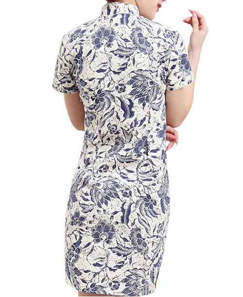 古典高雅青花瓷印花設(shè)計工藝,讓旗袍更加具有古典精致,高貴而典雅。