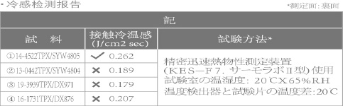 6. 冷感值測(cè)試 如下表