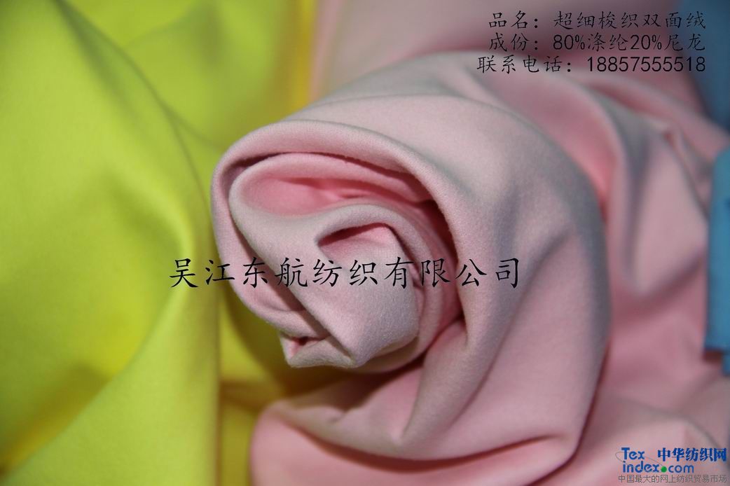 吳江東航紡織有限公司 主營 記憶布、金屬絲面料、雙面絨、尼絲紡、錦滌燈芯絨麂皮絨 等。是一家暨產(chǎn)品的開發(fā)、生產(chǎn)、銷售為一體的現(xiàn)代化企業(yè)公司,公司主要生產(chǎn)的產(chǎn)品是:錦滌雙面絨 ,“麂皮絨”、錦滌割絨(燈心絨)系列坯布,成品及后整理等加工面料,同屬化纖磨毛類的韓國彈力絨。臺(tái)灣MO'S等茄克運(yùn)動(dòng)服、鞋面、沙發(fā)套、手提包等面料;棉類:純棉、滌棉、T/R等休閑、茄克、羽絨服西褲等面料。