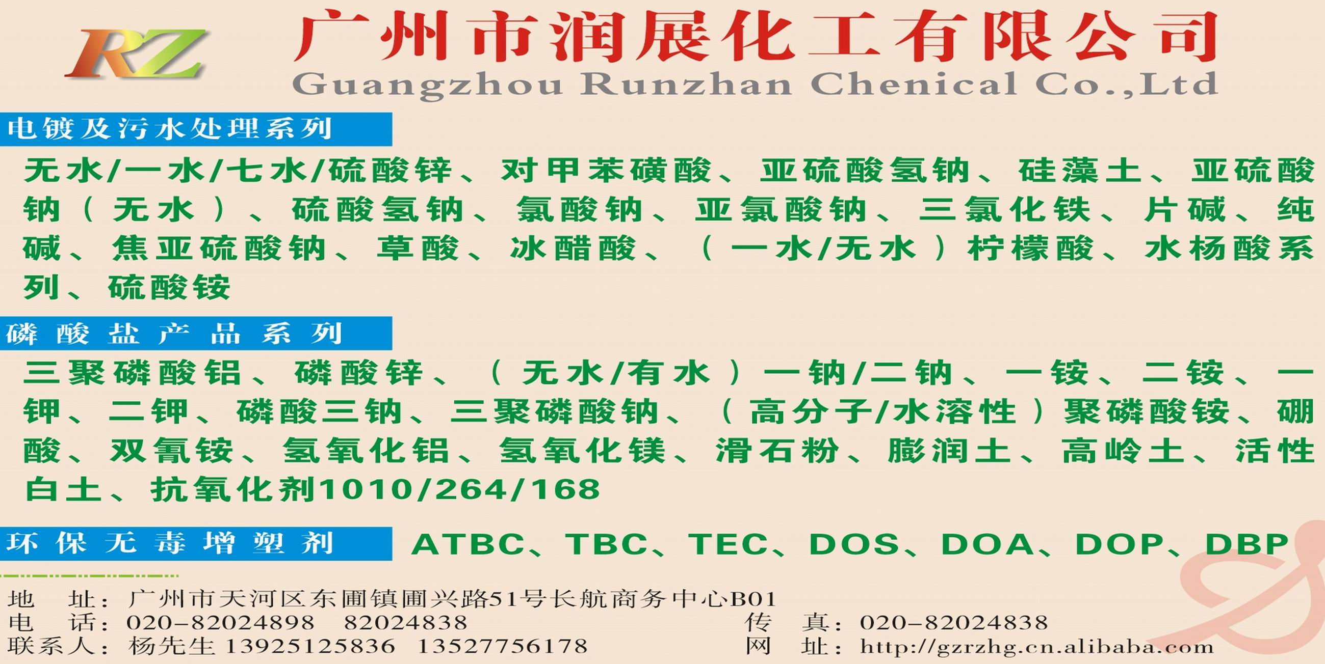 廣州市潤展化工有限公司位于華南最大的化工集散地——廣州化工城。公司自成立起本著“平等互利、互惠發(fā)展”的原則,誠信經(jīng)營,贏得廣大客戶的青睞和厚愛。在經(jīng)營上運用電子商務(wù)、開發(fā)貿(mào)易平臺,在售后服務(wù)上,跟蹤服務(wù);在產(chǎn)品上嚴(yán)把質(zhì)量關(guān),塑造良好信譽。公司深刻認(rèn)識到“得客戶者,得市場”始終堅持“合作雙贏,質(zhì)量第一,服務(wù)至上,有情有利”的經(jīng)營原則來開拓、培育發(fā)展市場,在較短的時間內(nèi),就已與眾多的客戶建立了良好的信譽合作關(guān)系。我們堅信,良好的信譽來自于用戶認(rèn)可的產(chǎn)品,可靠穩(wěn)定的產(chǎn)品資源,專業(yè)周到的用心服務(wù),我們愿與廣大客戶合作伙伴一道共同努力,創(chuàng)造美好的明天!
